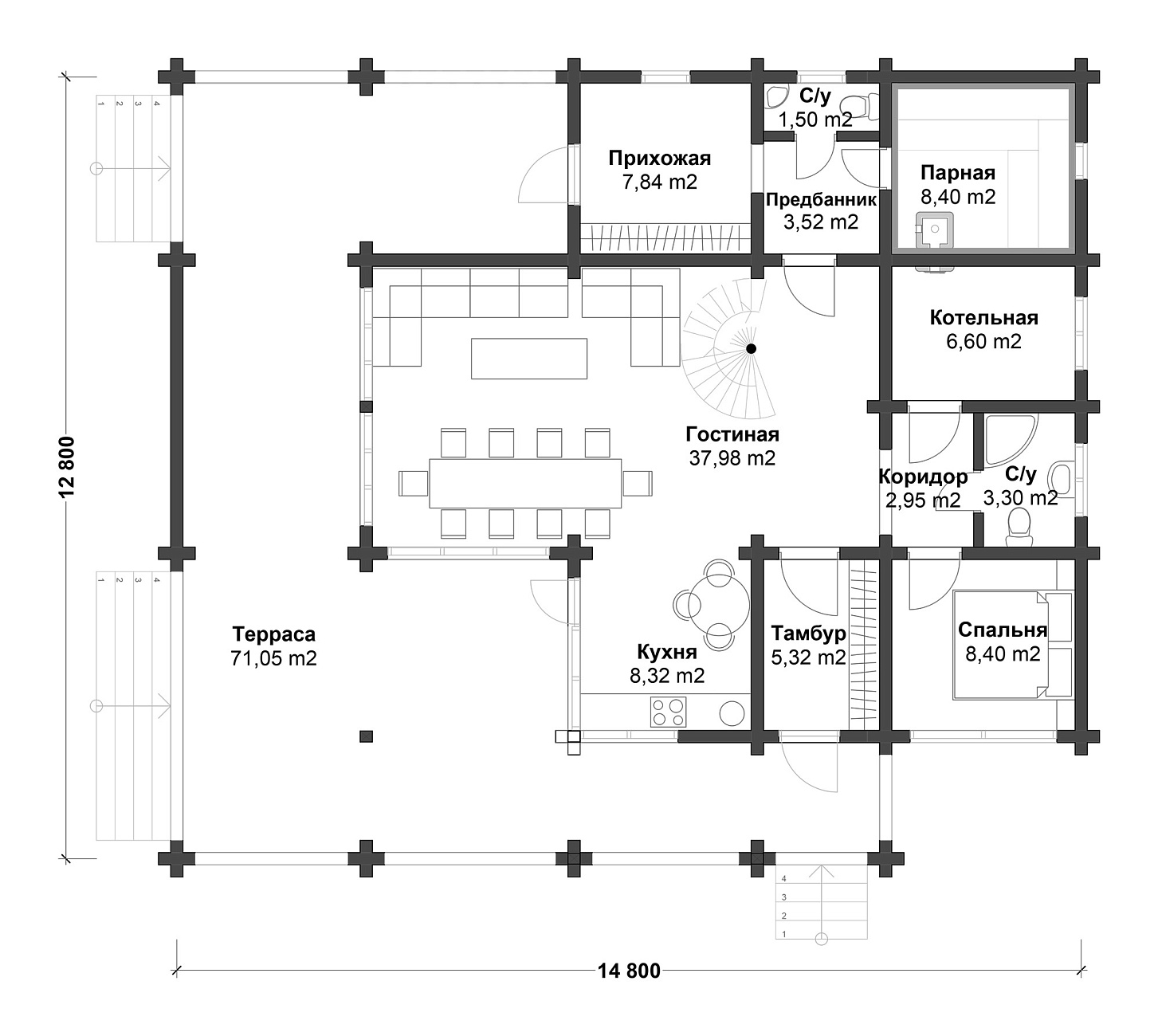 Дома из клееного бруса (ель, сосна) – главная специализация компании. Материал производится на собственном заводе, отличается минимальной усадкой (до 1%), высокой прочностью, отличной теплоизоляцией и эстетичным внешним видом.