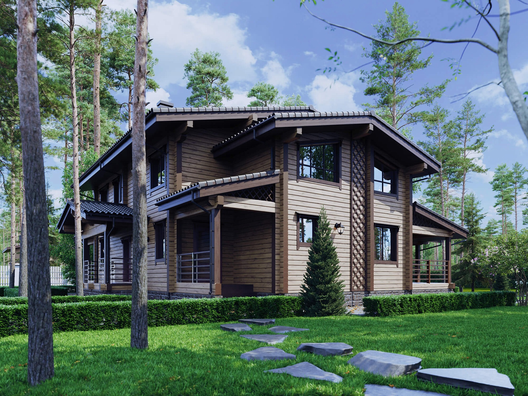 Дома из клееного бруса (ель, сосна) – главная специализация компании. Материал производится на собственном заводе, отличается минимальной усадкой (до 1%), высокой прочностью, отличной теплоизоляцией и эстетичным внешним видом.