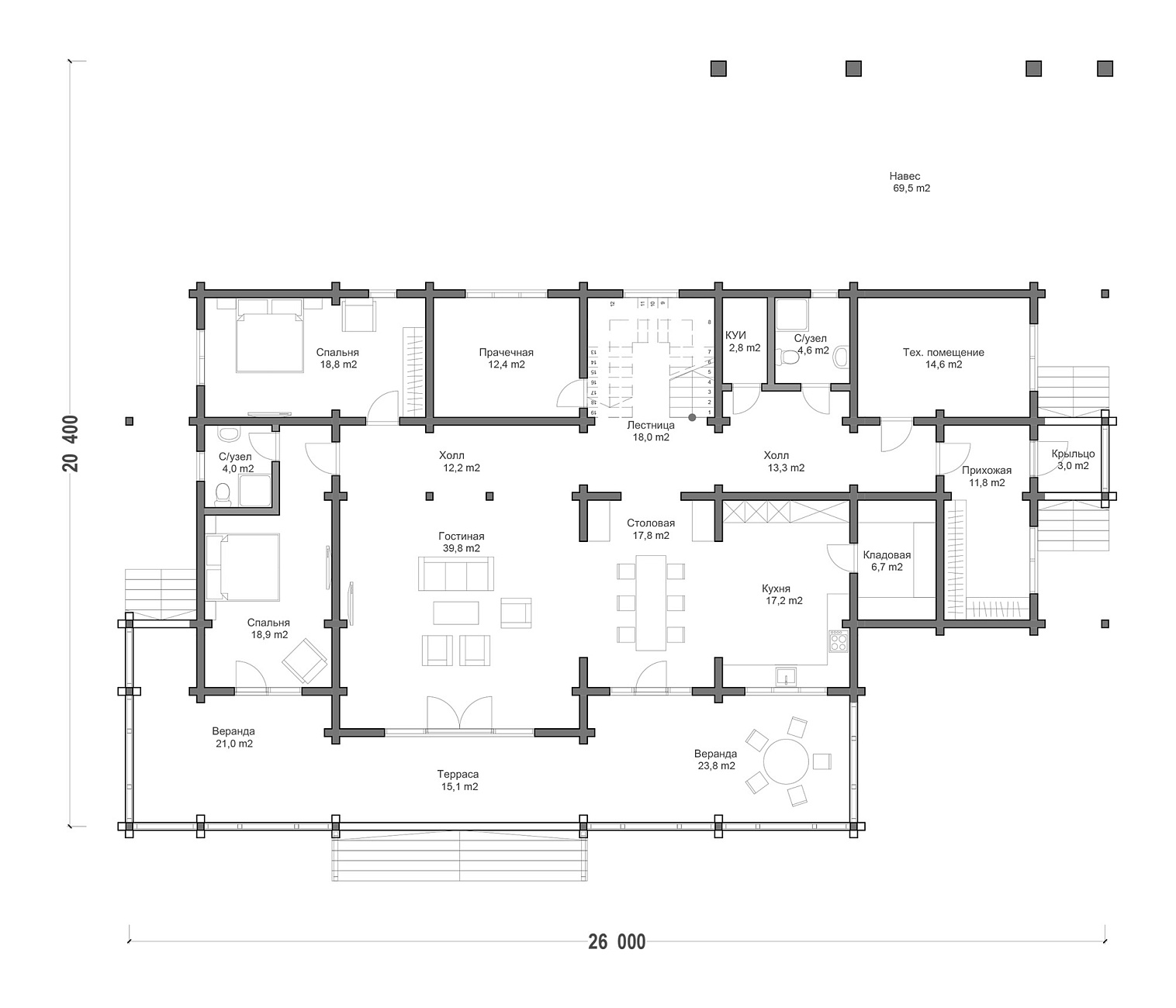 Дома из клееного бруса (ель, сосна) – главная специализация компании. Материал производится на собственном заводе, отличается минимальной усадкой (до 1%), высокой прочностью, отличной теплоизоляцией и эстетичным внешним видом.