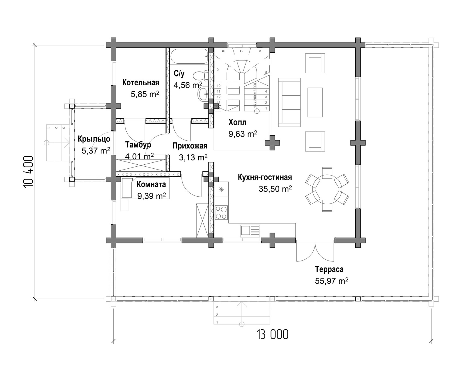 Дома из клееного бруса (ель, сосна) – главная специализация компании. Материал производится на собственном заводе, отличается минимальной усадкой (до 1%), высокой прочностью, отличной теплоизоляцией и эстетичным внешним видом.