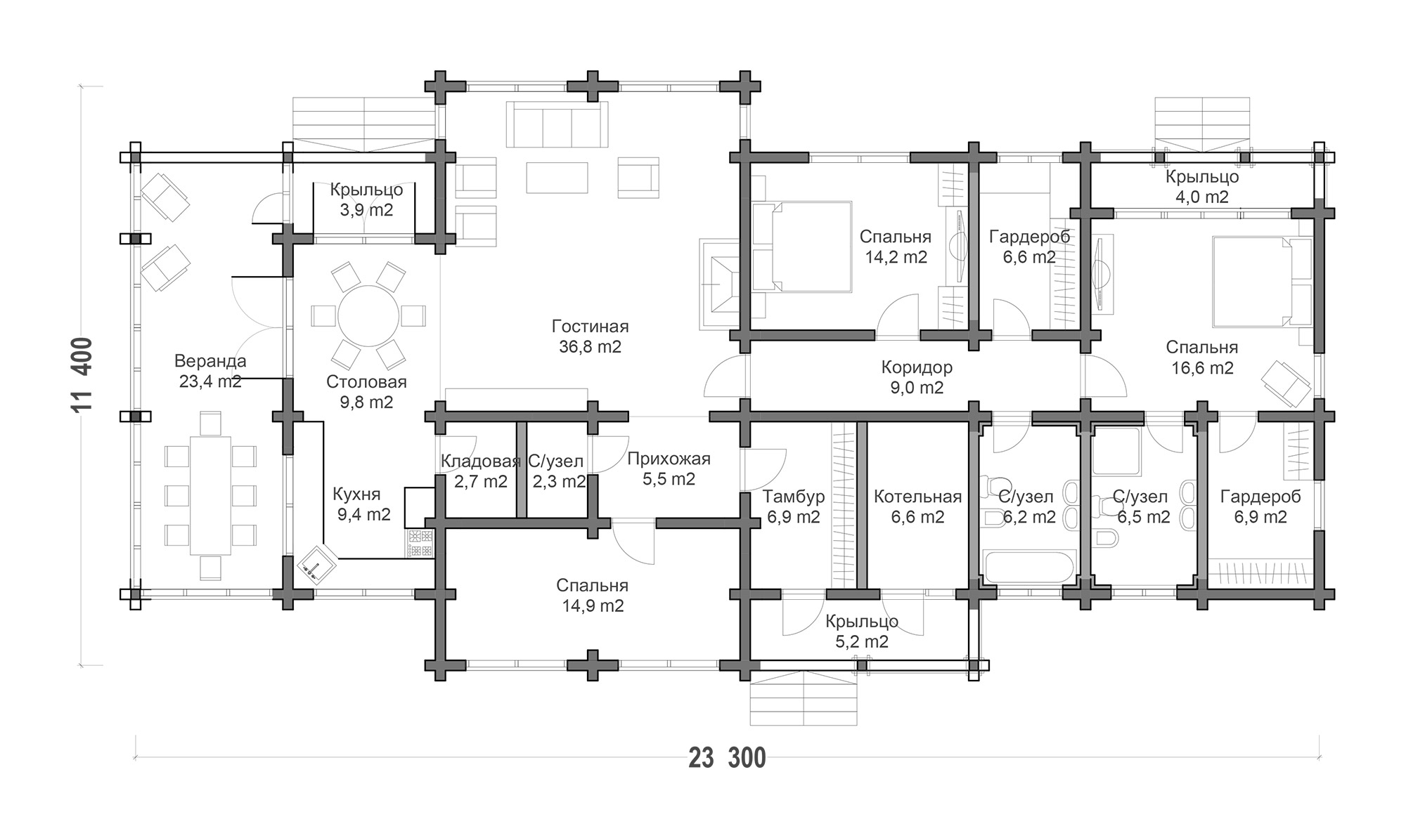 Дома из клееного бруса (ель, сосна) – главная специализация компании. Материал производится на собственном заводе, отличается минимальной усадкой (до 1%), высокой прочностью, отличной теплоизоляцией и эстетичным внешним видом.