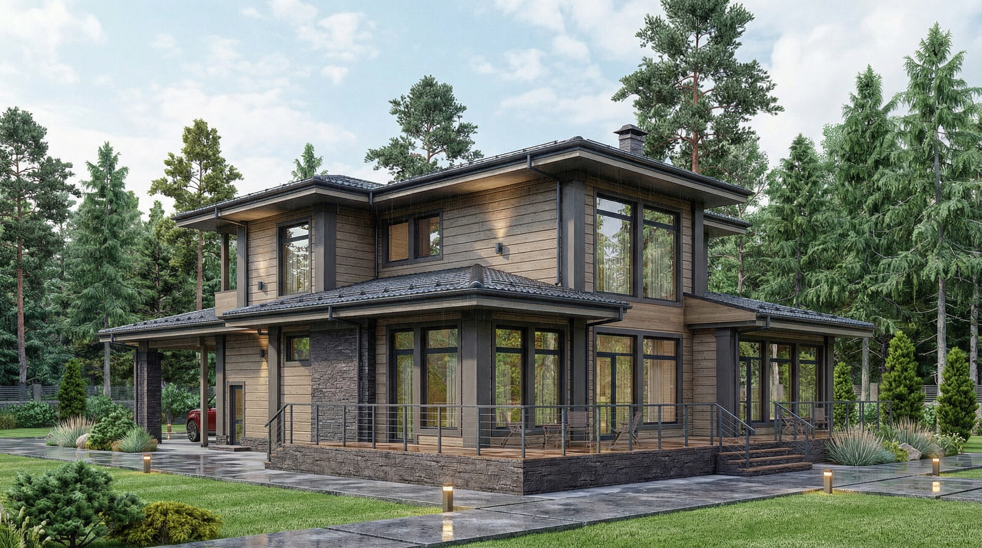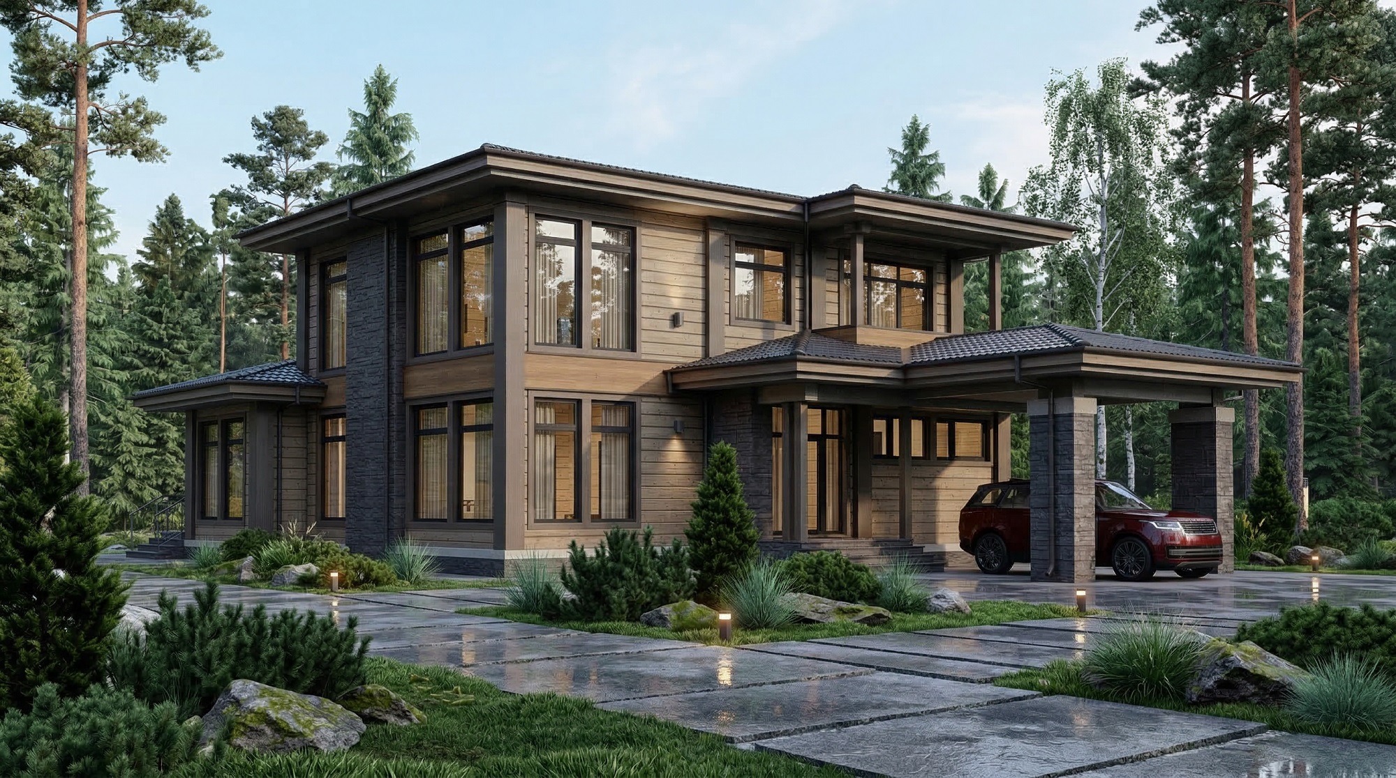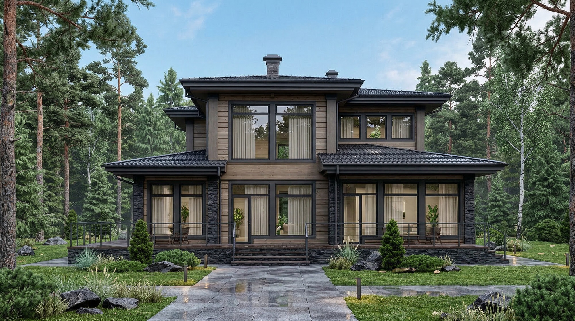 Каменные дома – строятся из керамических блоков и других современных материалов, отличаются высокой прочностью, отсутствием усадки и возможностью реализации сложных архитектурных решений.