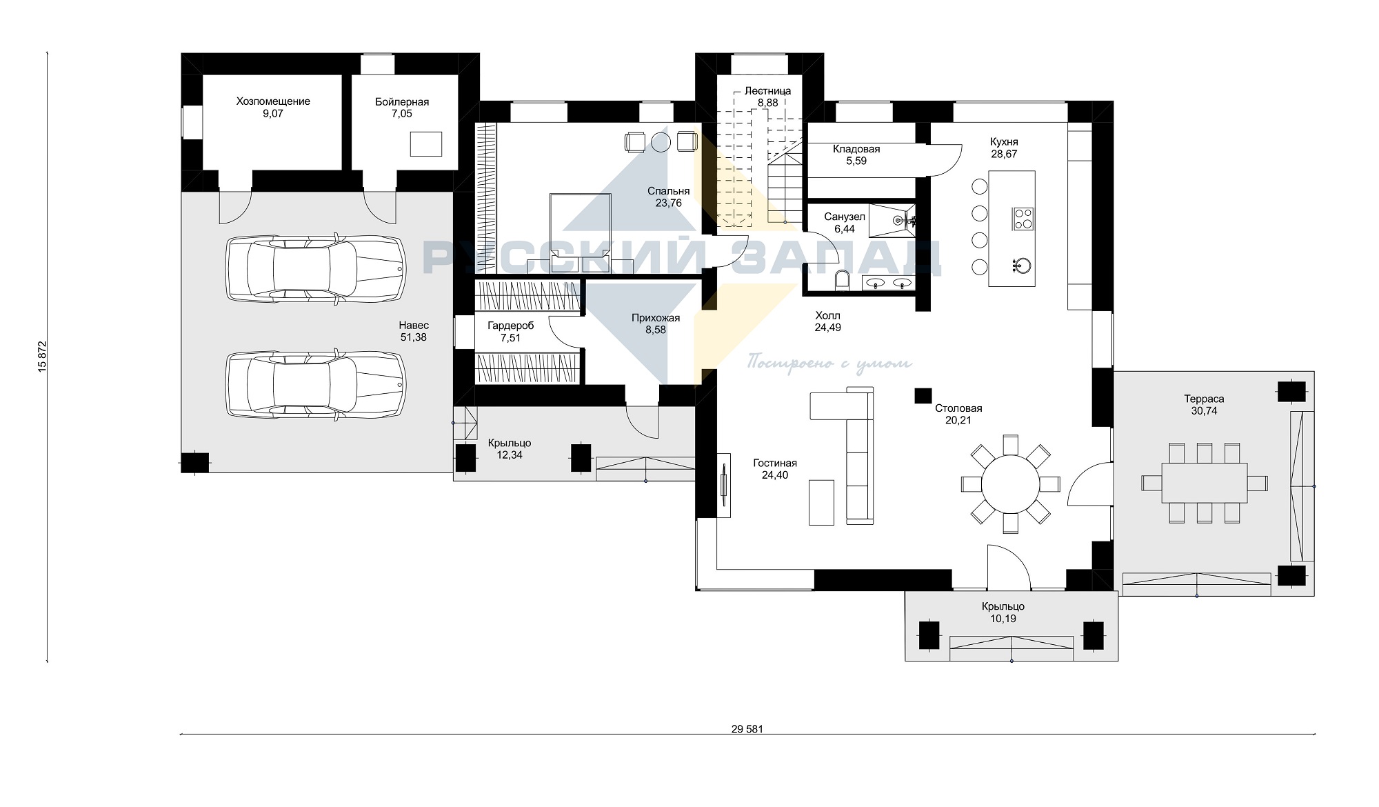 Да, "Русский Запад" предоставляет полный цикл услуг – от проектирования до сдачи готового дома.