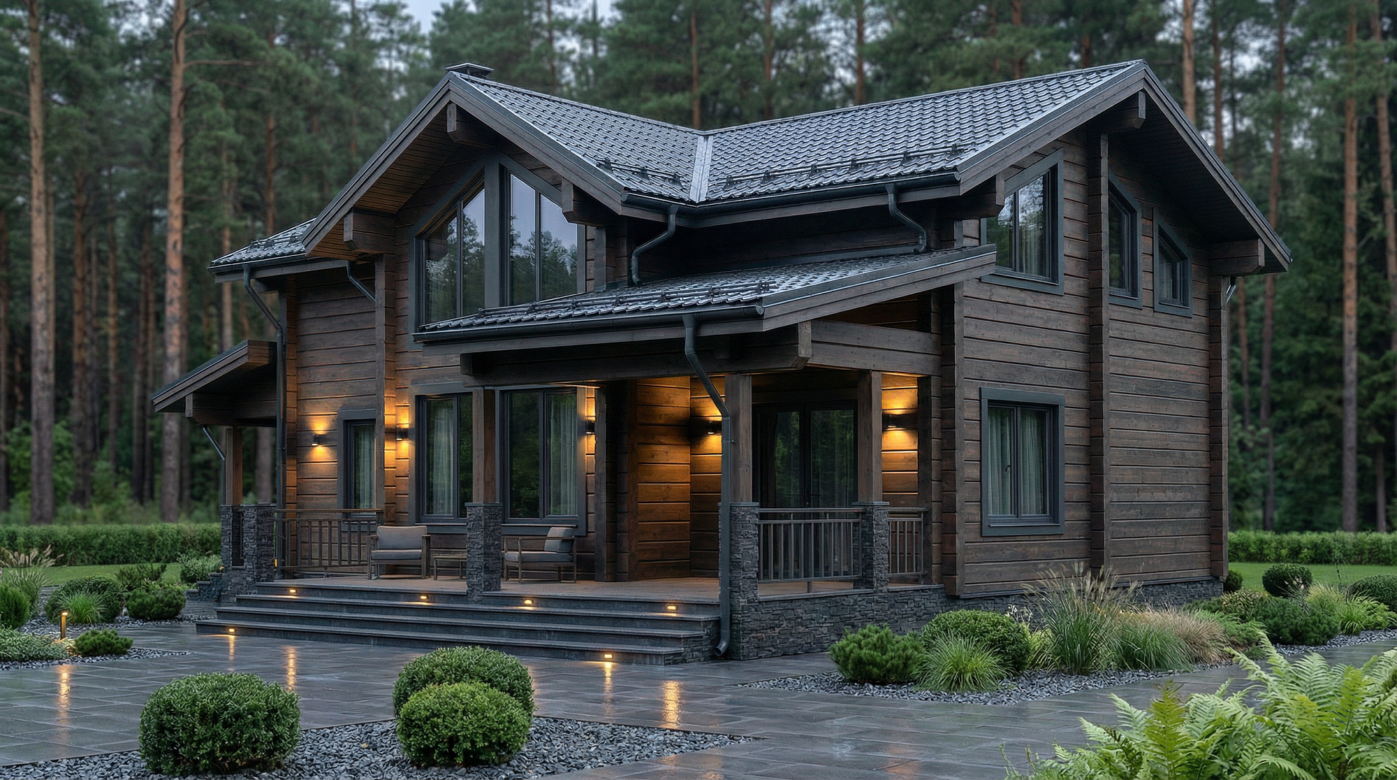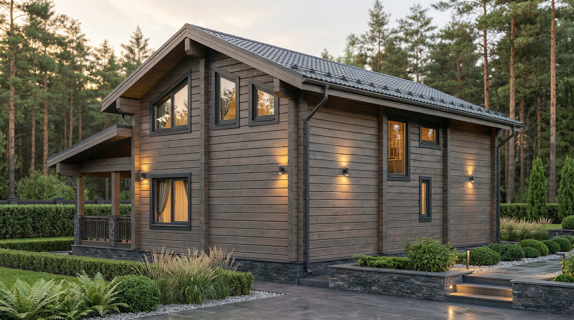 Каменные дома – строятся из керамических блоков и других современных материалов, отличаются высокой прочностью, отсутствием усадки и возможностью реализации сложных архитектурных решений.